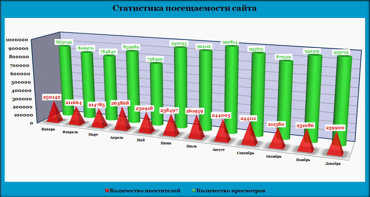 - Сумма просмотров сайта в месяц составляет 950 с половиной тысяч.